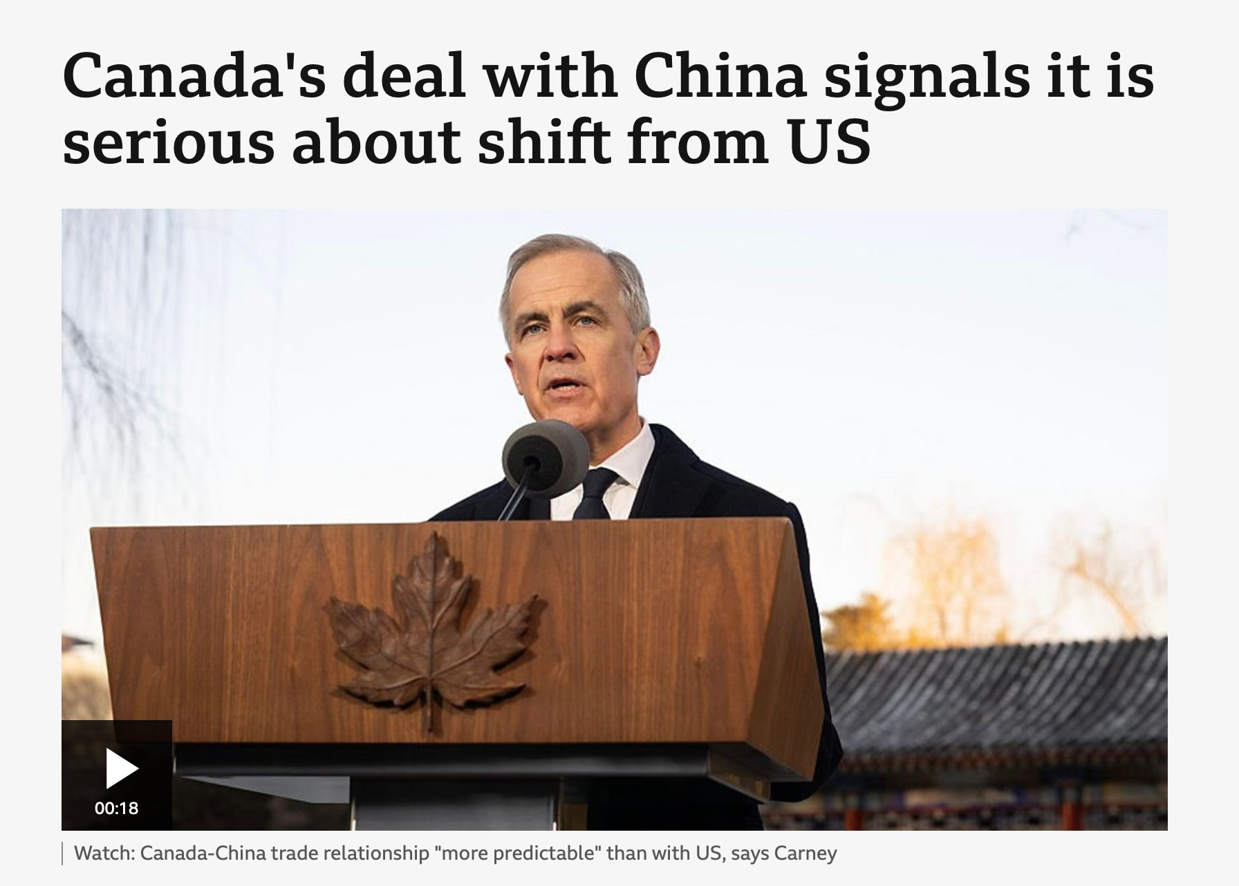 Isn’t it strange watching Canada grovel to China, desperate for some crumbs from the Chinese table? Of course I expect the UK will follow the same course in the next few week as Starmer jets to Beijing to also beg for more crumbs but it is Canada that I want to focus on as I think it illustrates the folly being commited by Carney et al.