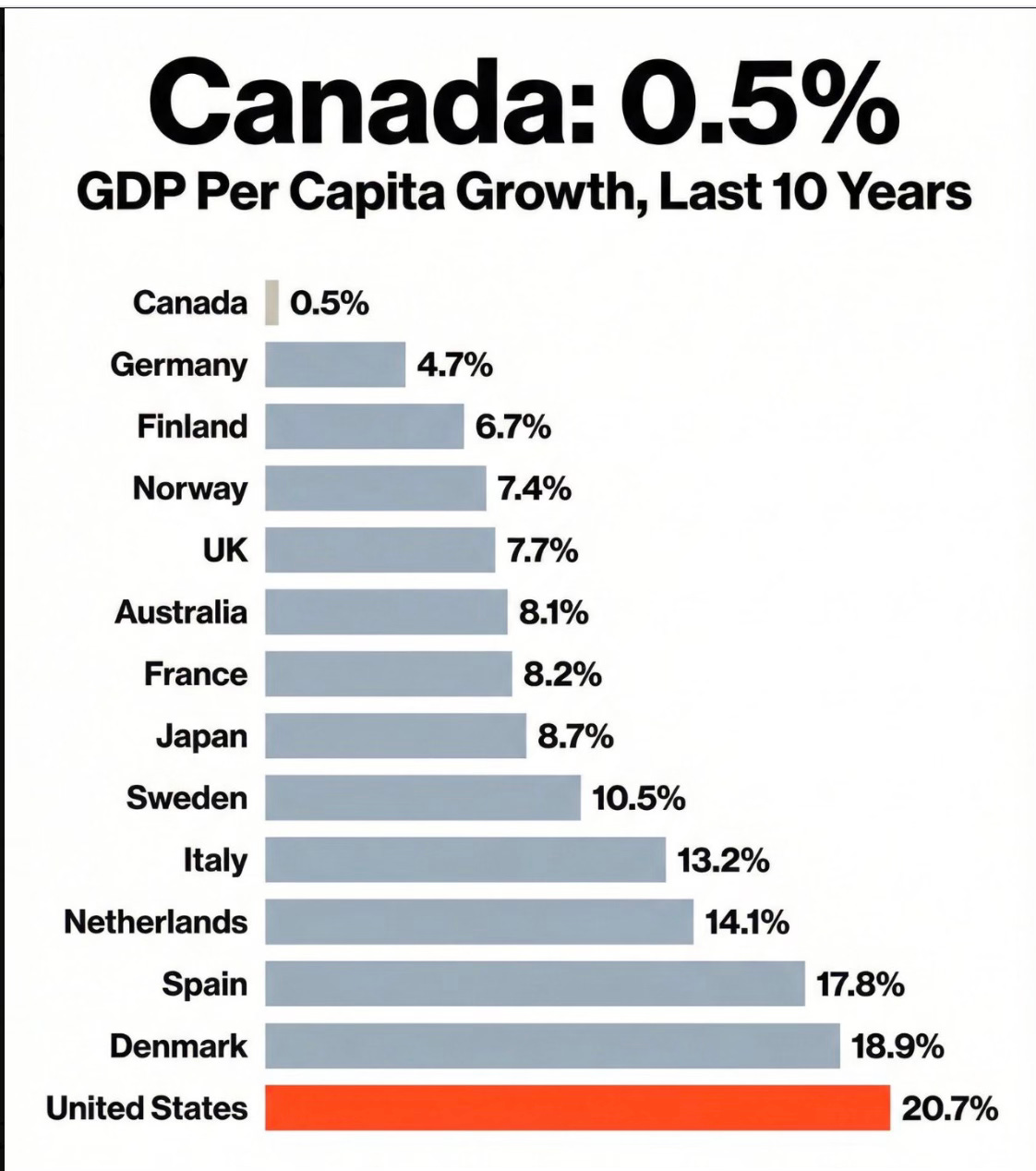 The Trudeau years saw Canada shrink to almost zero growth. Carney thinks he can do something about this by cutting a deal with Xi Jingping. That’s why he went to China.