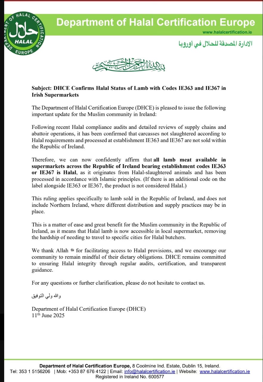 Did you see that Ireland has now embraced Halal-certified lamb in its supermarkets and this represents a very troubling regression in Irish animal welfare standards.