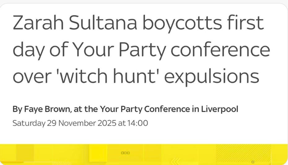 All of this brings me to the hilarious chaotic dysfunctional launch of the Jeremy Corbyn/Zarah Sultana agitprop group “Your Party” that took place in Liverpool over the weekend. When this new party was first mooted, it looked like it could have real momentum and seize a slice of the hard left Labour vote. But things have been unbelievably fractious and it seems to me that Corbyn and Sultana do not like each other very much.