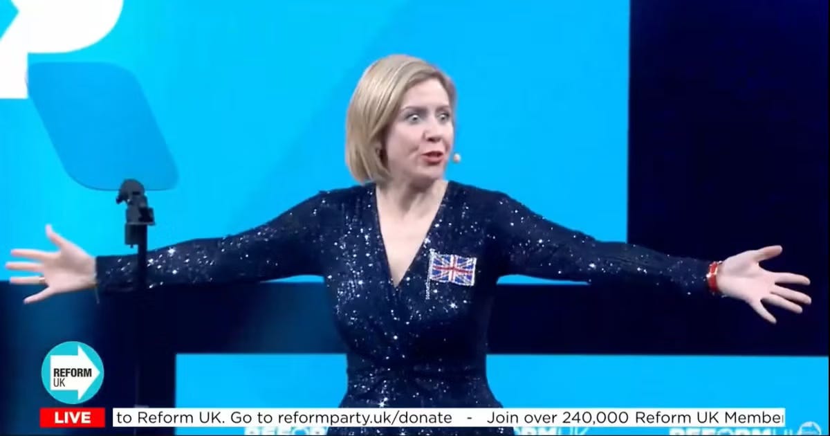 It’s the first day of the Reform Annual Conference and the timing was either very good or very bad. Maybe both. Obviously it coincided with the chaos surrounding Labour and that took away a few headlines but it also contrasted a Party making huge strides (Reform) with a Government in a total mess. On the eve of Conference, the ex-Conservative Minister Nadine Dorries defected to Reform. She follows other ex-Conservative Ministers like Andrea Jenkyns who have also hooked up with the Reform bandwagon. Here is Andrea making an entrance at Conference. I like Andrea but this is…odd.