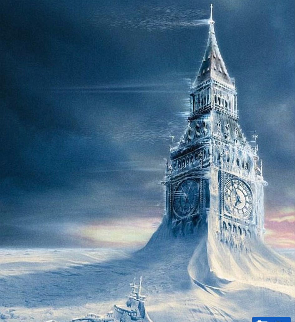 “The network of ocean currents which keep the Earth's climate stable could be about to collapse, scientists have warned. In an open letter, 44 of the world's leading climate scientists say that key Atlantic Ocean currents - including the Gulf Stream - are on the brink of failure The scientists caution that the collapse of the Atlantic Meridional Overturning Circulation (AMOC) could lead to 'devastating and irreversible impacts' which will affect 'the entire world for centuries to come' The resulting climate fallout could plunge the UK into a 'new Ice Age', with winter temperatures plummeting up to 15°C (27°F) below the current average.